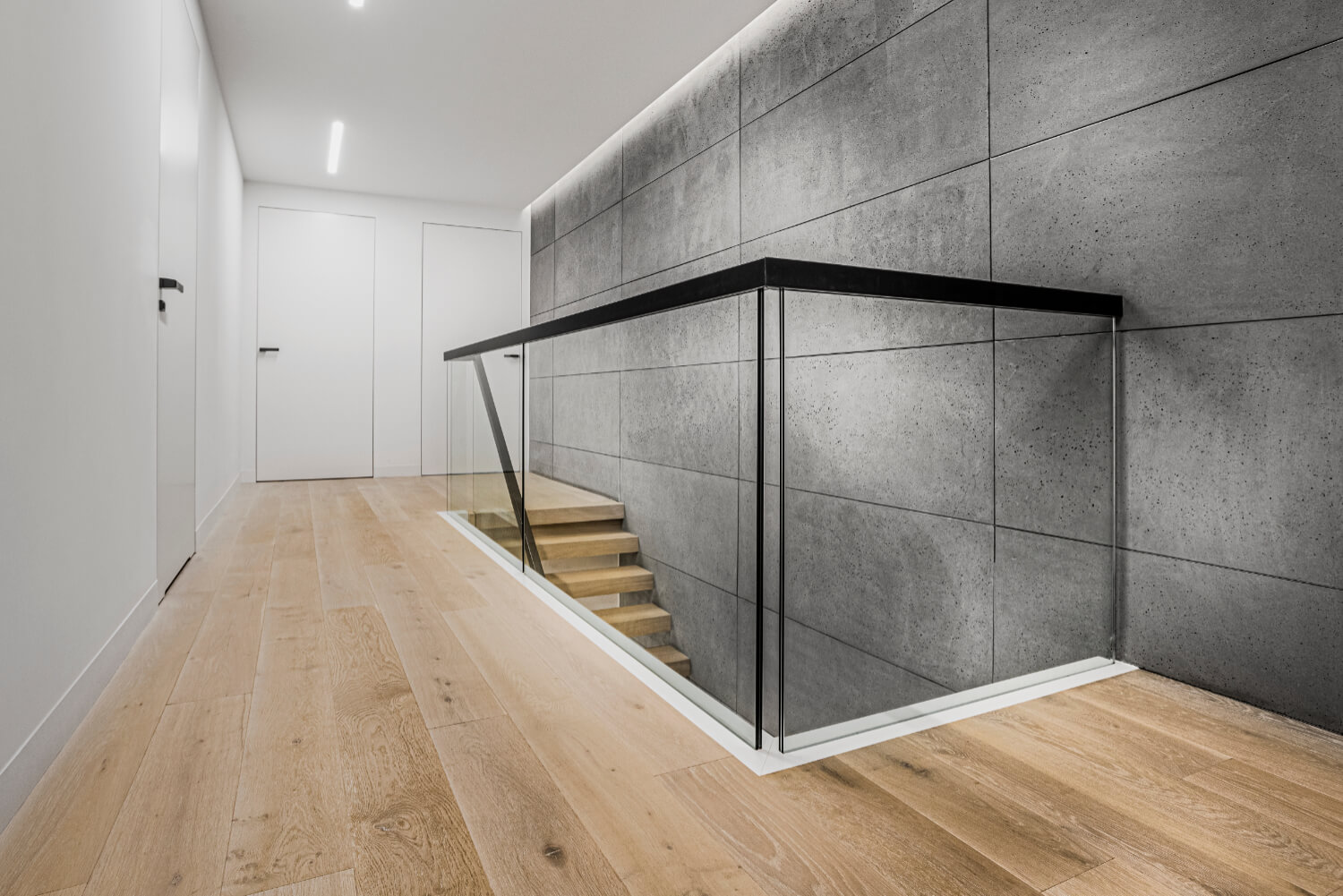 Der Stil des Staatlichen Bauhaus aus Weimar ist inzwischen über 100 Jahre alt und zugleich der Inbegriff des modernen Bauens in der Neuzeit. Eine wichtige Rolle spielen hierbei Kragarmtreppen wie diese aus Eichenholz. Das Glasgeländer besticht bei diesem Projekt durch seine puristische Ästhetik und wird von einem Handlauf aus schwarz lackiertem Hartholz komplettiert.