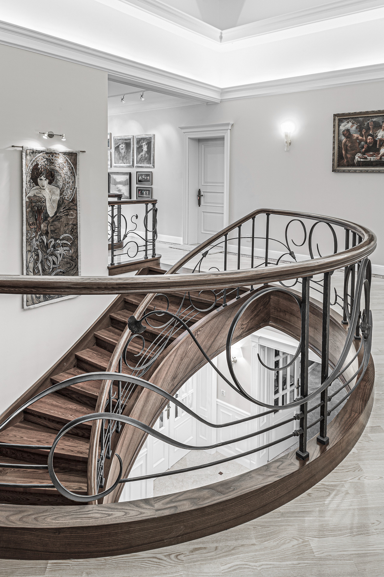 Der Jugendstil prägt auch heute unzählige Villen und Residenzen. Das Besondere an dieser Stiltreppe ist, dass der Antrittspfosten aus Bronze gegossen wurde. So fängt diese einzigartige Treppe nicht nur den Zeitgeist des Jugendstils ein, sondern bietet auch ein besonderes Highlight aus Bronze im Innendesign. Diese Jugendstiltreppe besticht zudem durch ihre Balustrade aus Schmiedeeisen, die in ihrer Farbgebung, Struktur und Haptik einzigartig ist.